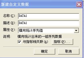 2,我在通过如下步骤:分析-》自定义数据,建议个名为DATA1的横向统计数据。数据参数如下: