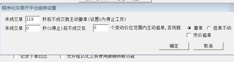 如果需要系统自动撤单,则在交易  下单设置 程式化交易 这里设置撤单追单项目