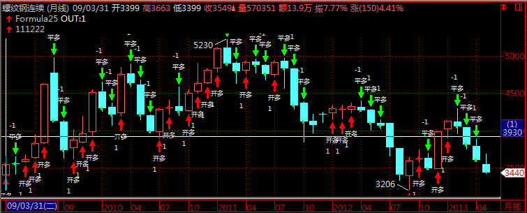 螺纹钢月线图的第一根k线,没有任何的信号!怎么会是2呢?