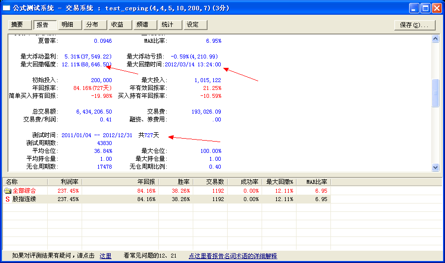 第一段测试从11年到12年,有最大回撤10万元。第二段从11年到13年,但最大回撤反而只有8万元了,10万元那个回撤丢了,测不到了!