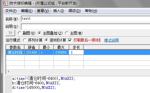 就是A输出不正确啊,这个公式就是想判断尾盘清仓,time>145000是正确的,time>清仓时间-6400就一直无信号