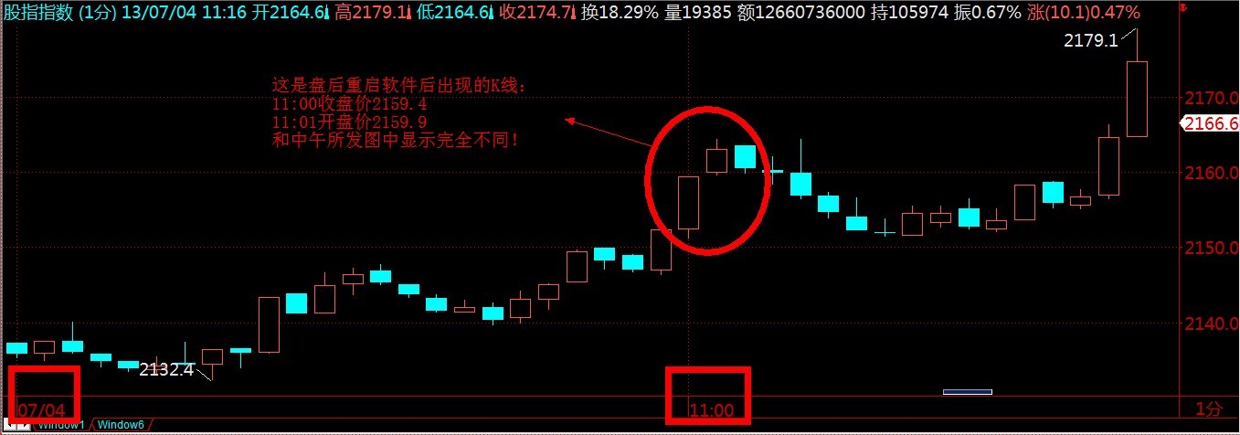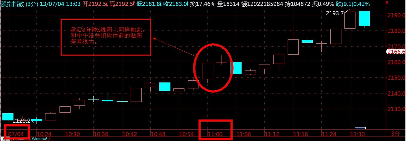 今天上午11:00—11:03“上海电信1”又出现停顿,造成“股指指数”数据再次失真,贴图如下:
