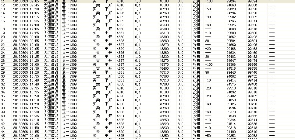 同样是采用豆一1309,五分钟,20130601-20130715时间段,全是采用K线走完下单