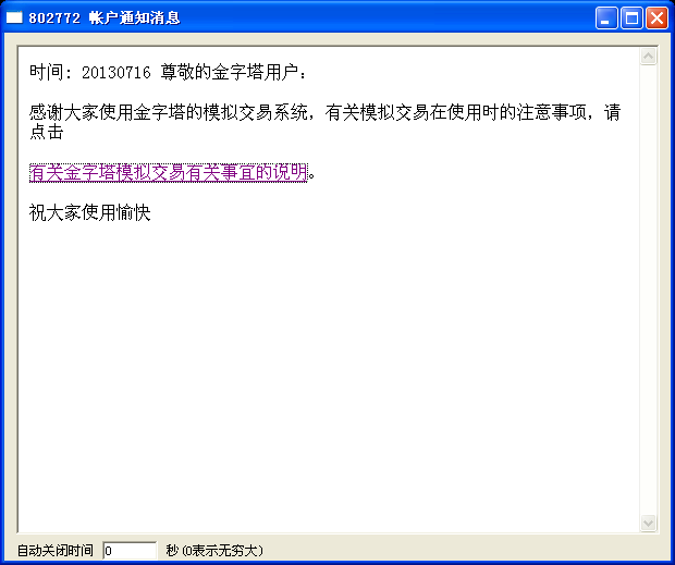 参考登陆模拟交易账号后,系统出现的提示