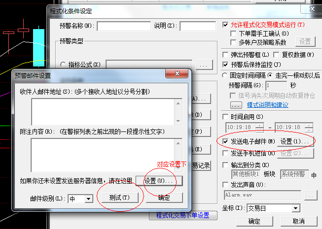 我的邮件设置和和发送邮件的公式都设置好了,我不登陆期货公司的资金账户,启动图表程式化交易只做预警的话(我正在测试发送邮件的功能,不想用实盘测试)邮件怎么不发送啊,是不是只有实盘交易才发邮件吗?