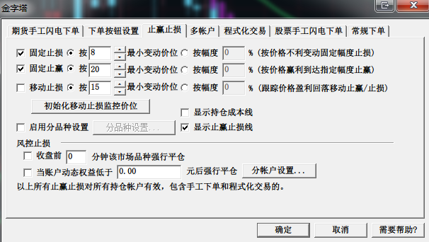 但是,设置了分品种止盈止损之后(图2)则发现完全没有执行设定的动作,也没有止盈止损线提示。为什么呢。