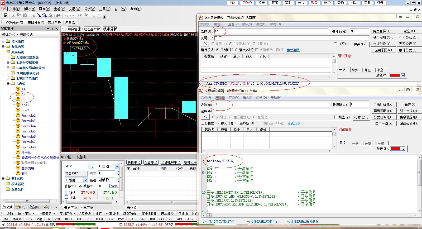 STKINDI('AU12','B.b',0,1)第一个参数比如说我这边调用的是品种是AU12(左右要单引号),