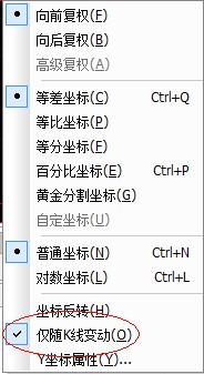 您好,鼠标右键Y轴然后选择仅随K线变动