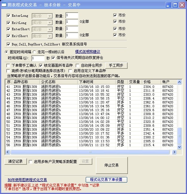 今天上午11:23分,图表程序化按信号正常开多一手。但随后11:24:01,在不符合开空条件,且无信号情况下,系统开空一手。在“交易状态”中有此笔成交记录,但“图表程序化交易”-“交易记录”中却无。相关截图如上。