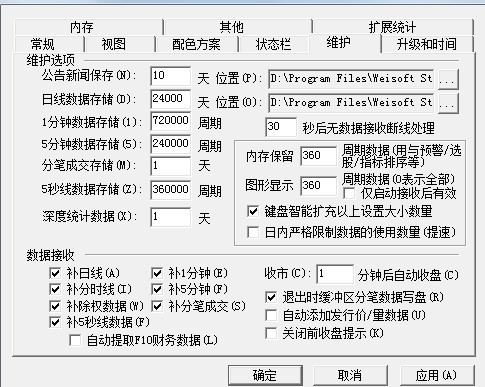 注,我个人已经把工具“选项”中“维护”菜单项的“5秒线数据存储”调整到7200000(720万根了),“5秒线数据”数据是一个月一个月的逐月补充的。
