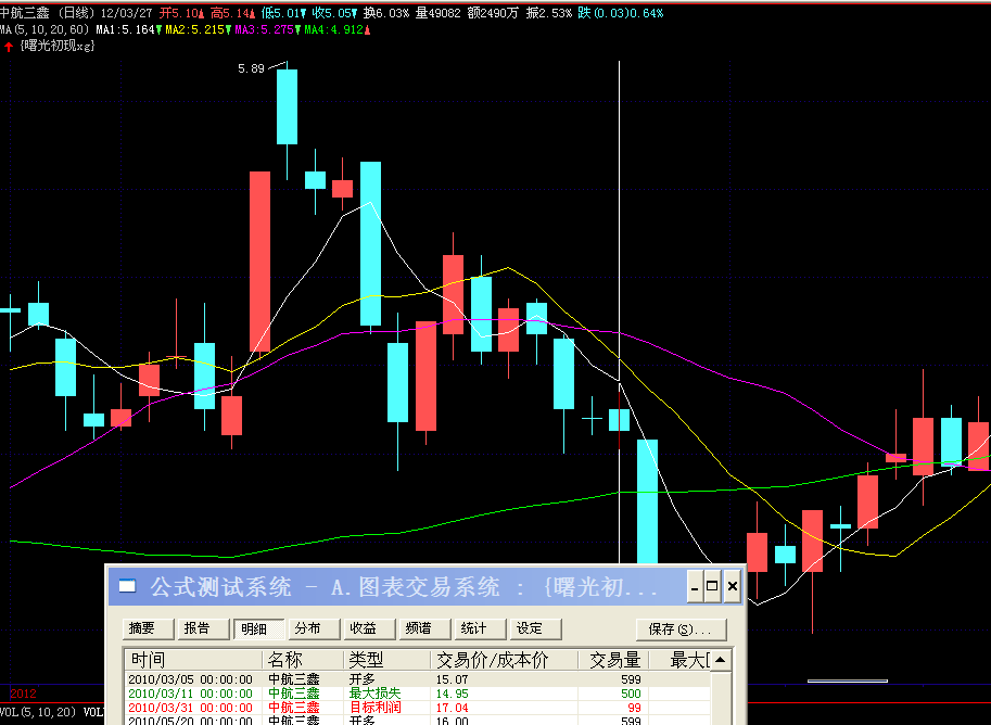 第一个交易时间是2010年3月5日,可是鼠标点击此明细后,无法定位到2010年,主图竟然定位到了2012年