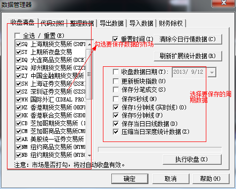 请教:如何设定收盘自动下载选定周期、选定品种的数据 ?