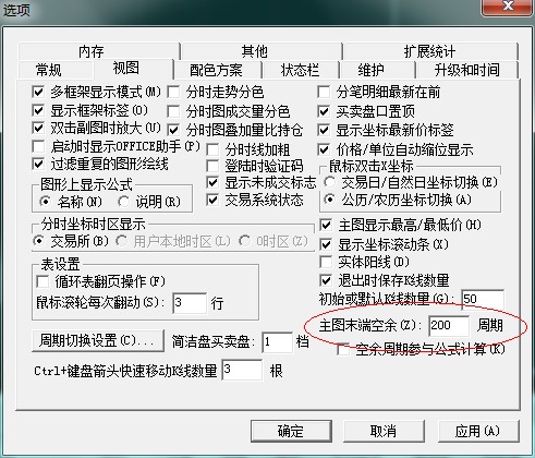 这样的话进入工具-选项-视图里设置主图空余周期即可