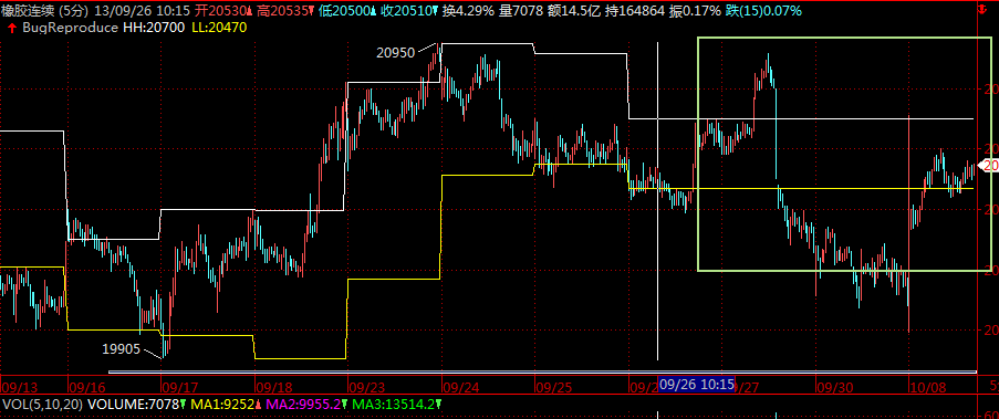 hh, ll 分别是前一个交易日的最高价和最低价。但是9/27日开始就出问题了,一直和9/26日的价格一致无变化