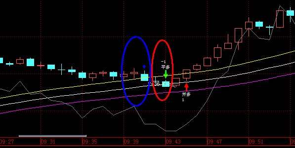 第一个图,是动态信号(实际跑的信号)比图表信号早的情况