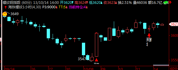 2013-10-14 09:00:05.210    【图表】框架:hzzg100w 触发下单 SHELLSHORT 品种 RB13 下单K线 2013.10.11 15:00:00 公式:海珠螺纹1小时 窗格ID:2 代码行:32