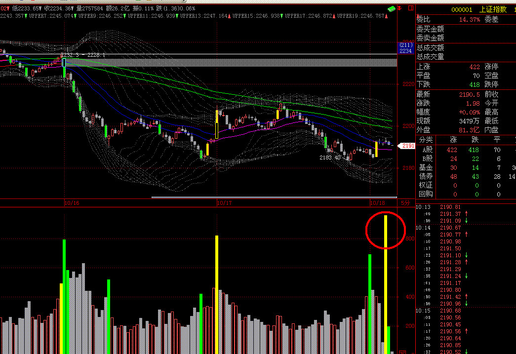 10月18日10点10分  看十字光标 (5分钟图000001上证指数)