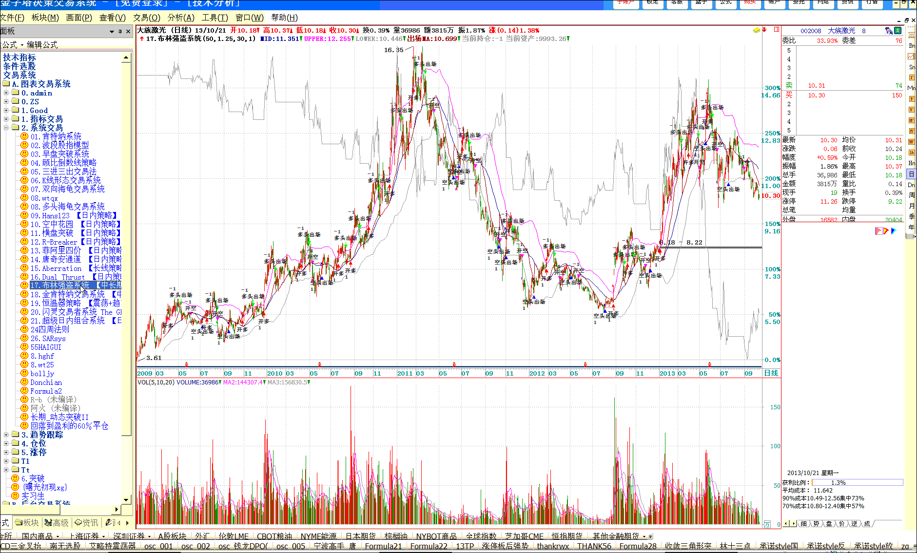 1、选择系统交易里的:15.Aberration 这个长期策略测试股票 2009年至2013年,股票968个或者更多,2130个(上海A股和深圳A股)