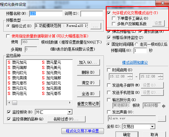 看下是不是条件里面对应的没有勾选允许程序化交易?