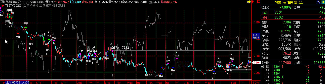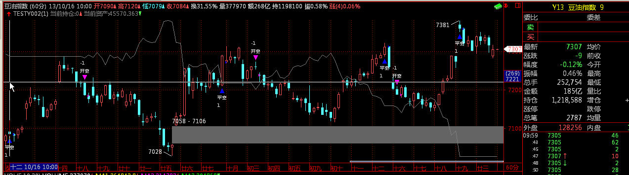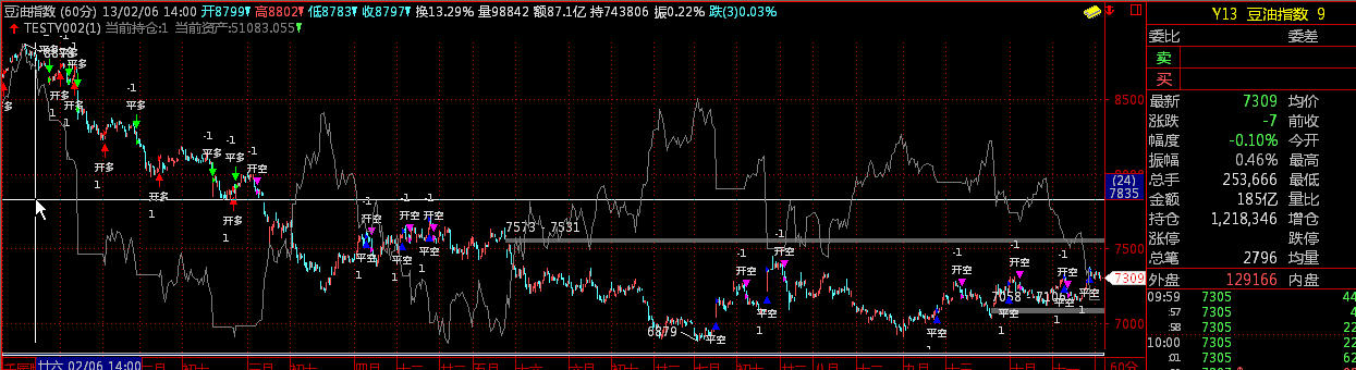 豆油指数合约,放大缩小k线图,信号不闪烁: