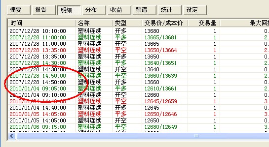 请教,中间出现一段无法测试是怎么回事呢?数据已经下载了。品种是塑料连续合约