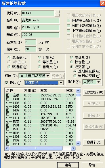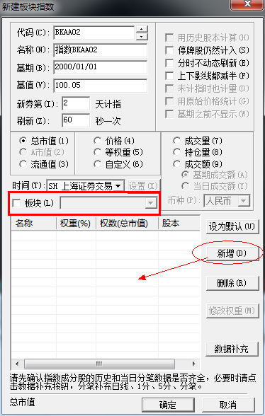 不要勾选版块,点击新增可以添加合约,对应合约权重可以权重栏更改