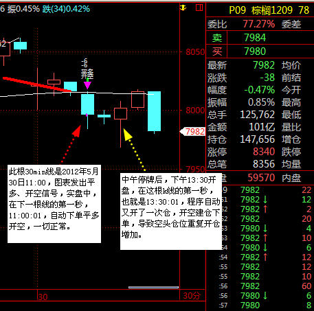 停牌前倒数第二根k线出信号,在最后一根k线已经下单交易的情况下,闭市期间,金字塔程序关闭过。在重新开市后(早上开市、下午开市,均存在此情况),第一根k线的第一秒又重复下单开仓交易。我用的k线是30min线。这是软件的bug吧?!救命!!!