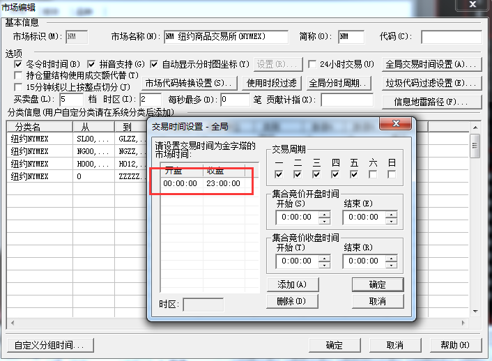 比如NYMEX,从中国凌晨3点开始,然后到中国下午五点,作为一个整体,因为中间停盘一小时,所以可以把这段时间设置为一个整体时间吗,还是必须分成两端时间?
