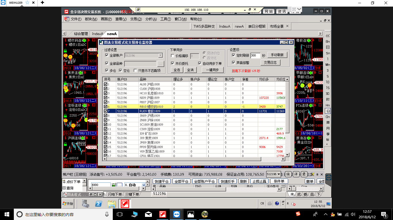 这个监控,橡胶品种理论多空,都有,账户实际没有,但是这种情况没有补仓,自动对冲了,应该是补1个多,补一个空