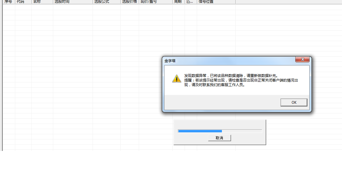 (3)在重装软件,重启机器多次后,无奈装回4.70版本。数据补充仍然会报错(还是说7170),但是条件选股已经不会出错了。