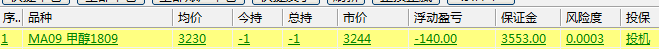 2018-08-14 11:00:54.600    【回报】620622 : MA809 - 已成交 1 价格:3230 开 卖