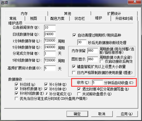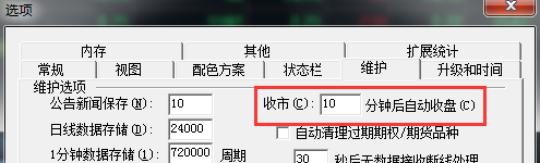 工具 》选项 》维护中,可以设置收盘后N分钟自动收盘