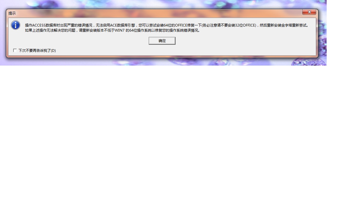 最近打开金字塔时发现这个情况,提示“无法启用ACE数据库引擎”。不处理会影响正常的程序运行和下单吗?