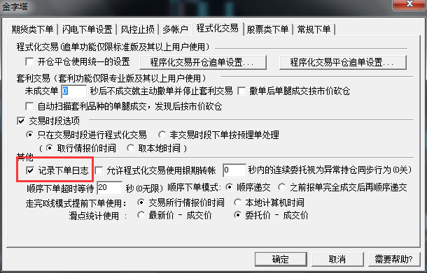 未勾选的话通过,交易》下单设置》程序化交易 》 记录下单日志