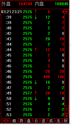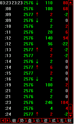 最后一个是仓差,是当笔成交量-上一笔成交量的差值。正数为红色,绿色为负数