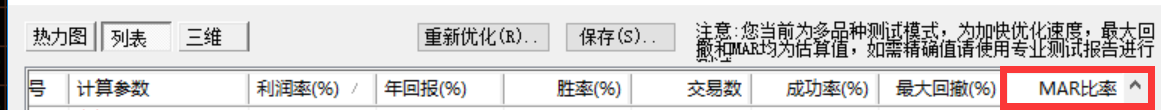 参数优化的时候,有一个MAR比例,这个是含义?计算公式是什么?