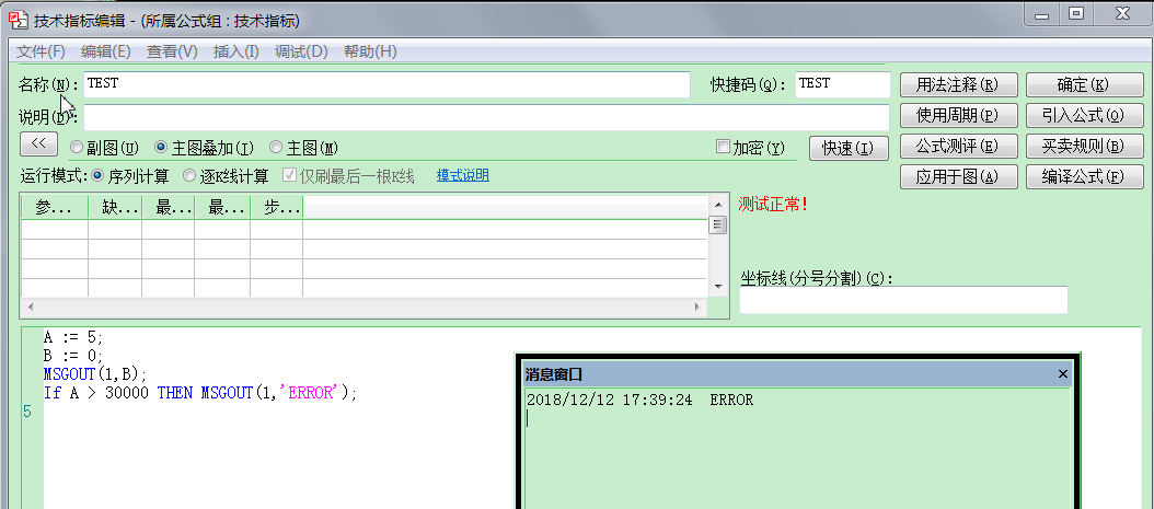 按正常逻辑,消息窗口应该不会输出“ERROR”,但实际运行这个公式时,消息窗口会输出“ERROR”。 如果把B := 0 改为 B := 1 则不会输出“ERROR”。