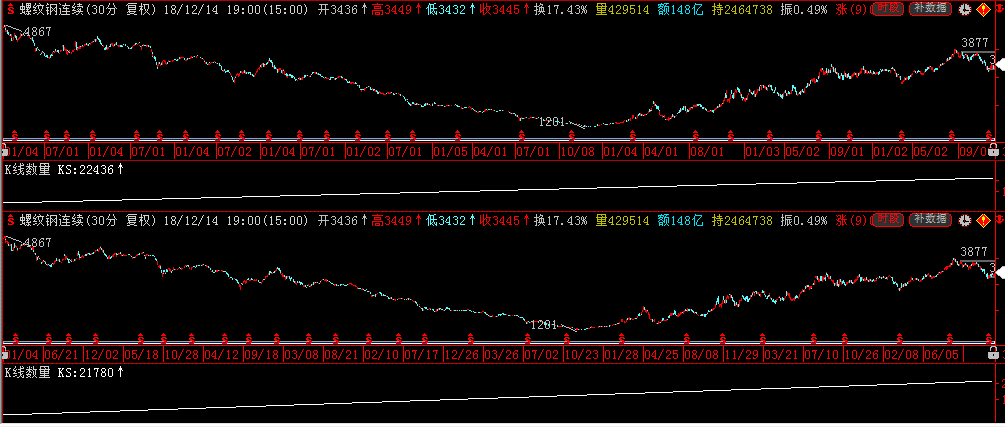 都是30分钟没有区别啊,你把下面的KS分别加载到上面2个主图看下呢?