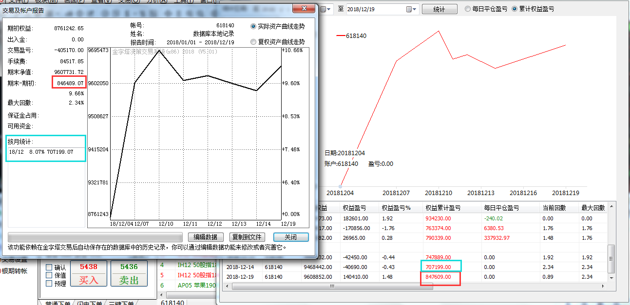 1、账户累计盈亏是 根据期末账户净值 减去 期初账户权益 得出的,不管是否是满仓操作计算的还是账户权益的差值