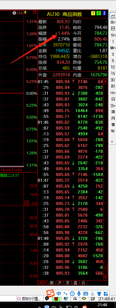 各个商品的单独指数已经修复了,这个au30指数还有点问题,目前还在处理中