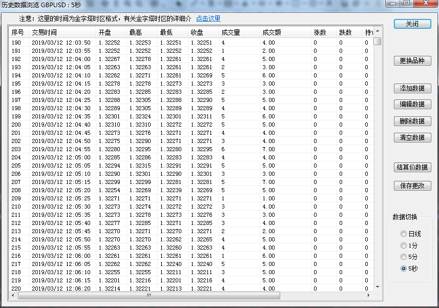数据接收没问题,就是历史数据一开始补充就出问题了,刚才补充了一下,分钟数据又出问题了.....12号的 英镑美元