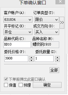 这个路径打开的就是下单确认窗口,你看窗口名称就知道了。  可以通过自定义快捷键快速呼出,工具 》 更多功能 》 自定义菜单 》 键盘中设置。