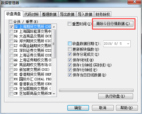 工具 》 数据管理 》 数据管理器 》 勾选上海市场,清楚当日数据