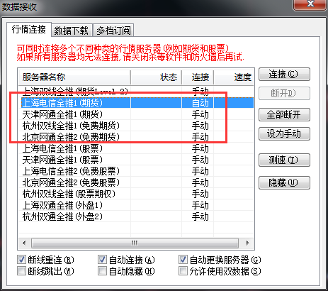 2、自动在期货4个行情服务器中切换,不包括L2那台行情服务器;