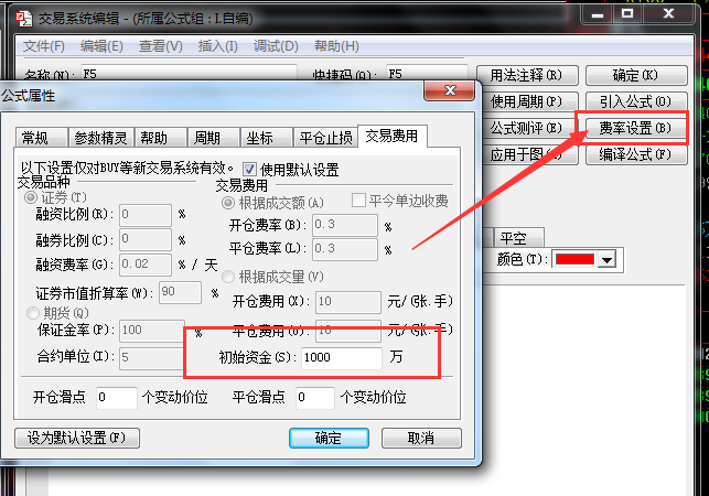 提示 :交易系统公式,资金已经不足,当公式属性的费率设置里设置合理的初始资金,在哪?如何设?
