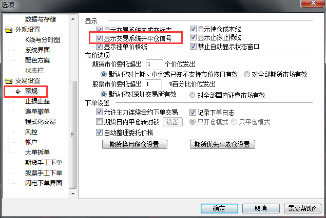 工具 》  选项 》 显示开平仓信号
