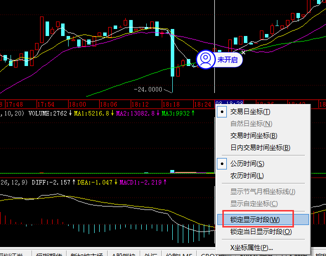2、套利合约上也可以设置,右键时间轴--锁定显示时段。