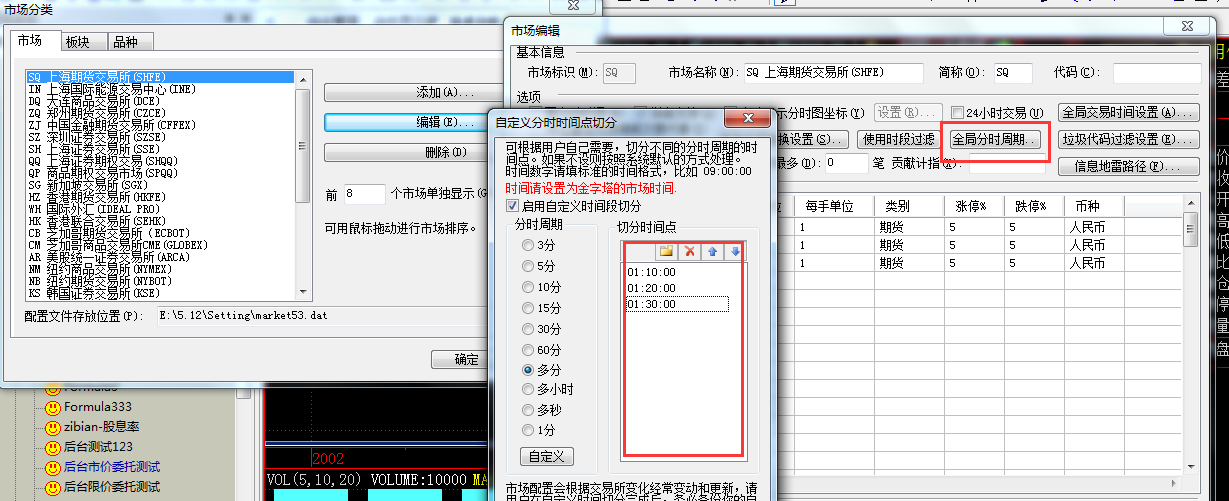 请教:十分钟周期,在上午10点1刻停盘的时候,他就直接收盘了,按时间应该在10:35他才收盘,请问怎么设置呢?