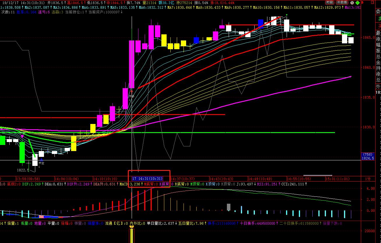 如下图,在1分钟周期图表中,连续K线相差了16分钟??导致买入点滞后,请问是什么原因?
