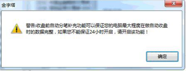 如果您是做程序化的话,建议您开启该功能;如果你是指看看盘的话,可以不使用该功能; 金字塔软件会在次日自动清除昨天的数据,如果不做自动收盘则会缺失昨日的数据。